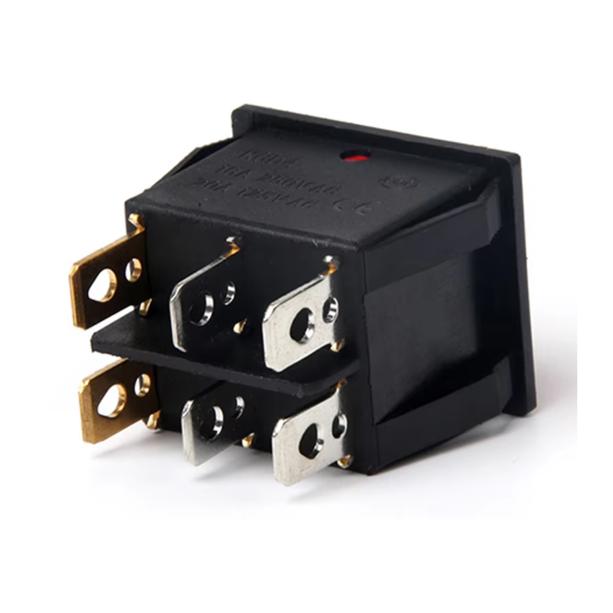 SWITCH CUADRADO 125V 10A 6 PIN DOBLE ON-OFF-ON-OFF ROJO KCD2-502